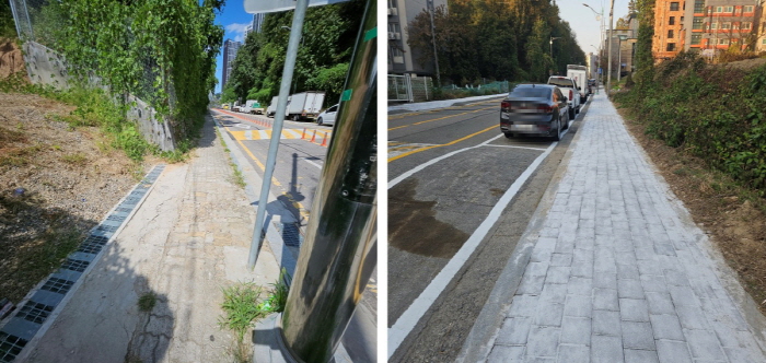 | ▲ 용인특례시 모현읍이 외대로 25번길 보행환경을 개선했다. 사진은 개선전(왼쪽)과 개선후(오른쪽) 모습 |