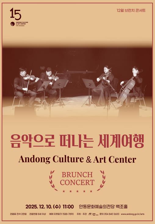 [뉴스앤톡] 안동문화예술의전당은 매월 둘째 주 수요일, 바쁜 일상 속 잠시 여유를 찾고자 하는 클래식 애호가들을 위한 브런치 콘서트를 정기적으로 운영하고 있다. 12월 10일 오전 11시에는 백조홀에서 한 해의 끝자락을 따뜻하게 채워줄 브런치 콘서트 ‘음악으로 떠나는 세계여행’을 선보인다.