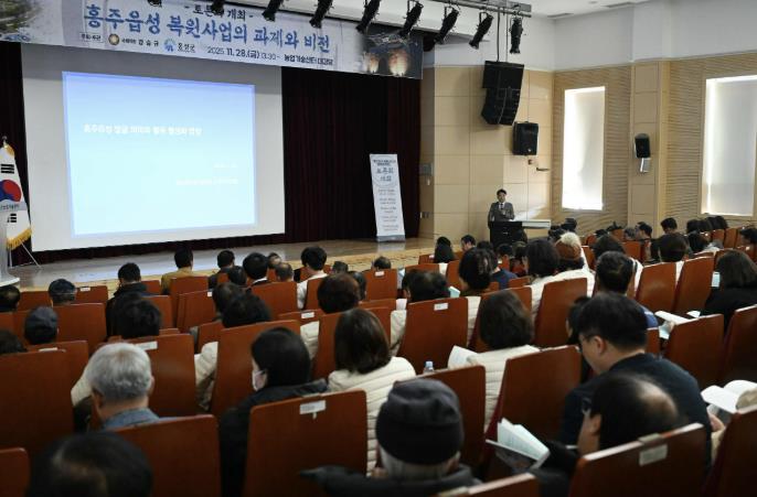 [뉴스앤톡] 홍성군은 ‘홍주읍성 복원사업의 과제와 비전 토론회(이하 토론회)’가 지난 28일 홍성농업기술센터 대강당에서 지역주민과 관련 연구자 등 200여 명이 참석한 가운데 성황리에 마무리됐다고 밝혔다.
