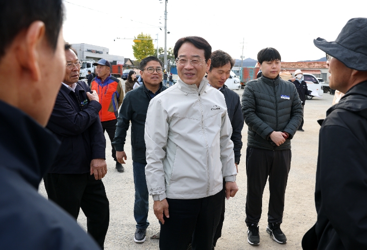 | ▲ 강진원 강진군수가 지난 11일 수매현장을 방문해 격려하고 있다. |