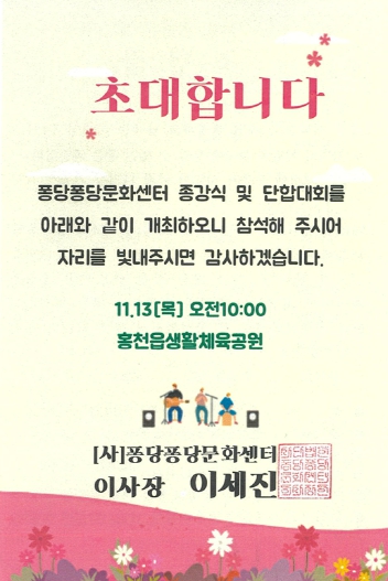 [뉴스앤톡] 홍천군은 11월 13일, 홍천읍 생활체육공원에서 '제4회 퐁당퐁당 문화센터 종강식 및 단합대회'를 개최한다고 밝혔다.