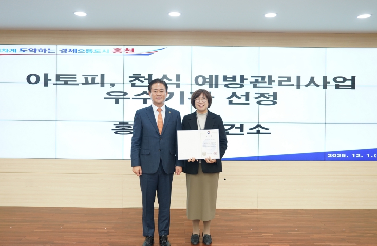 [뉴스앤톡] 홍천군보건소는 2025년 아토피, 천식 예방관리사업 추진 성과를 인정받아 질병관리청장 표창을 수상했다고 밝혔다.