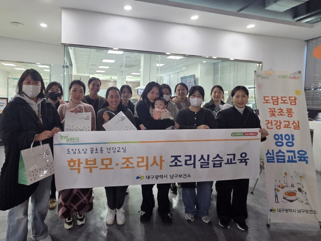 [뉴스앤톡] 대구 남구보건소는 지난 24일 유아 건강관리 프로그램 ‘도담도담 꽃초롱 건강가꾸기’사업의 일환으로 관내 유치원 및 어린이집의 학부모 등을 대상으로 조리실습 및 식생활 인식 개선 교육을 진행했다.