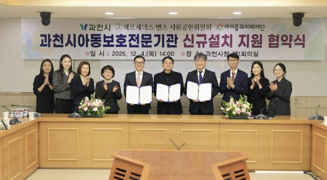 [뉴스앤톡] 과천시는 지난 4일 시청 회의실에서 메르세데스-벤츠 사회공헌위원회 및 사회복지법인 아이들과미래재단과 ‘과천시아동보호전문기관 신규 설치’를 위한 협약식을 개최했다고 밝혔다.