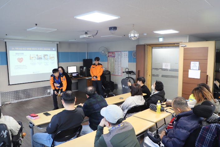 주요 교육 내용은 ▲화재 발생 시 초기 대응 행동요령 ▲소화기 및 피난기구 사용법 ▲심폐소생술‧하임리히법 등 응급처치 교육 ▲‘화재대피 안심콜’ 홍보 ▲장애인 안전용품 신청 및 보급 안내 등이다.