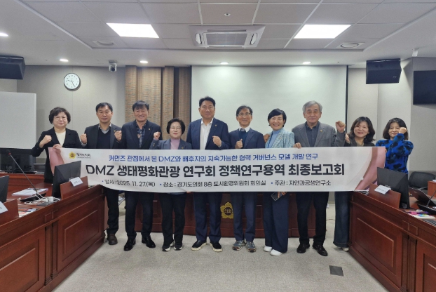 [뉴스앤톡] 경기도의회 의원연구단체인 DMZ생태평화관광 연구회(회장 오준환 의원)는 지난 27일 경기도의회 도시환경위원회 회의실에서 '커먼즈 관점에서 본 DMZ와 배후지의 지속가능한 협력 거버넌스 모델 개발 연구' 용역 최종보고회를 개최했다.
