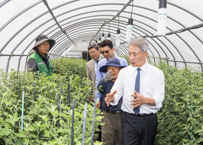 | ▲ 윤환 구청장, '가을꽃 전시회' 준비 국화 재배 현장 확인(2025년 5월) |