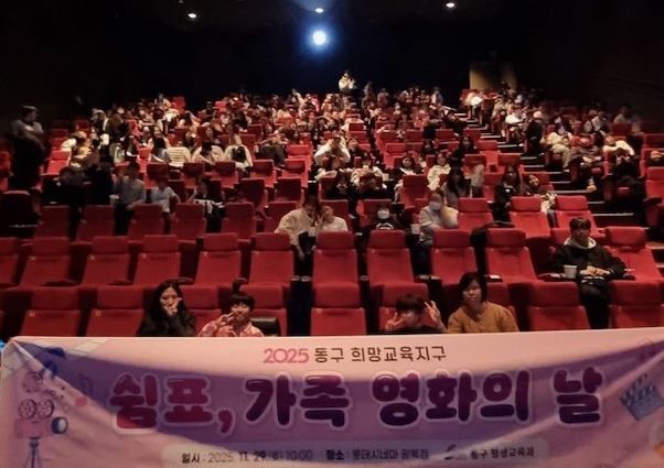 [뉴스앤톡] 부산 동구는 지난 11월 29일 롯데시네마 광복점에서 2025년 동구 희망교육지구 ‘쉼표, 가족 영화의 날’ 프로그램을 개최했다. 이번 행사에는 관내 초·중학생 및 학부모 등 200여 명이 참여했다.