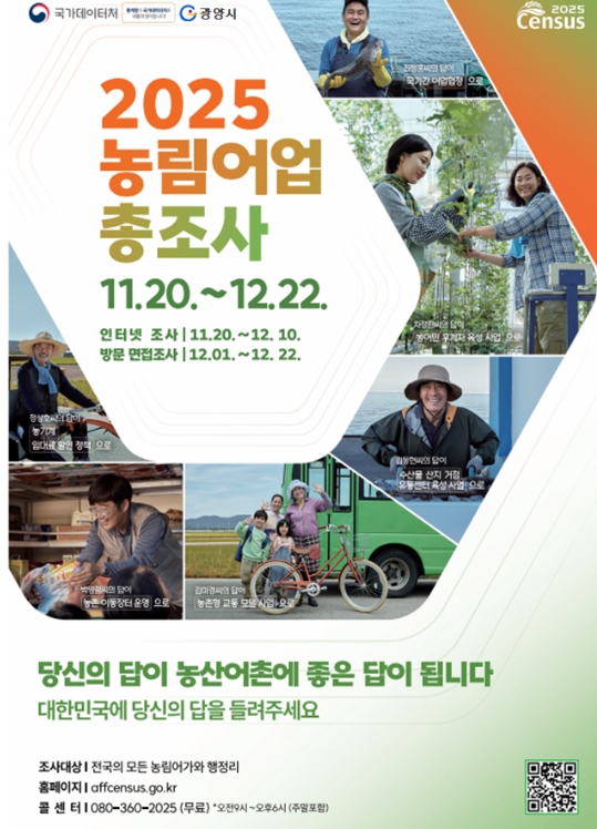 [뉴스앤톡] 광양시는 11월 20일부터 12월 22일까지 ‘2025 농림어업총조사’를 실시한다고 밝혔다.