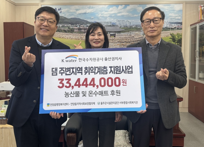 [뉴스앤톡] 울주군시설관리공단 서부종합사회복지관(이사장 최인식)은 12월 8일, 한국수자원공사 울산권지사와 함께 ‘물길따라 온기 전하는 겨울나기 지원사업’을 추진해 댐 주변지역 취약계층 233세대에 온수매트와 농산물 꾸러미를 지원했다.