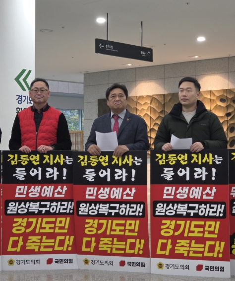 [뉴스앤톡] 경기도의회 교육기획위원회 김호겸 의원(국민의힘, 수원5)은 2025년 12월 3일 백현종 경기도의회 국민의힘 대표의원을 중심으로 경기도의회 교육기획위원회 위원 및 교육행정위원회 위원들과 함께 김동연 지사가 팽개치고 있는 경기도 민생예산 복구를 촉구했다.
