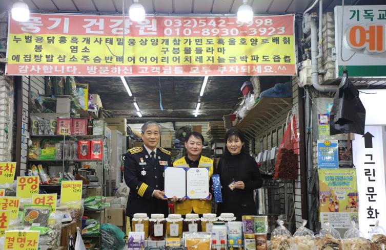 ▲ 계양소방서, 제63주년 소방의 날 맞아 전통시장 자율소방대·한국119청소년단 유공자 ‘찾아가는 표창’ 수여