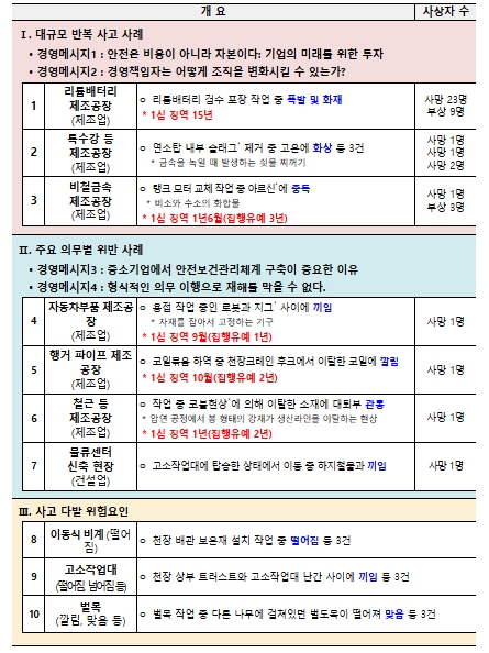 [뉴스앤톡] 고용노동부는 12월 16일 「중대재해 사고백서: 2025 실천만이 위험을 막는다」를 발간했다.