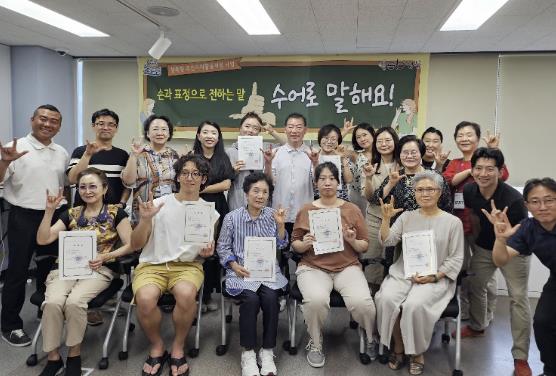 교육 과정 출석률 80% 이상인 11명의 수강생에게는 공식 수료증이 수여됐으며, 수료자는 향후 더 높은 단계의 수어 교육과 함께 관내 행사 시 수어 봉사활동에도 참여할 예정이다.