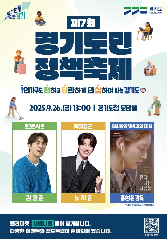 이렇게 모아진 도민의 소리를 주제로 개그맨 김원훈과 함께하는 ‘1인가구 공감 토크콘서트’를 진행할 예정이다. 영화 ‘혼자사는 사람들’ 상영회 및 감독과의 대화, 트로트 가수 노지훈의 축하공연도 펼쳐진다.