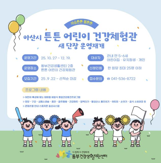 한편, 어린이 건강체험관 관련 자세한 사항은 아산시 동부건강생활지원센터로 문의하면 안내받을 수 있다.