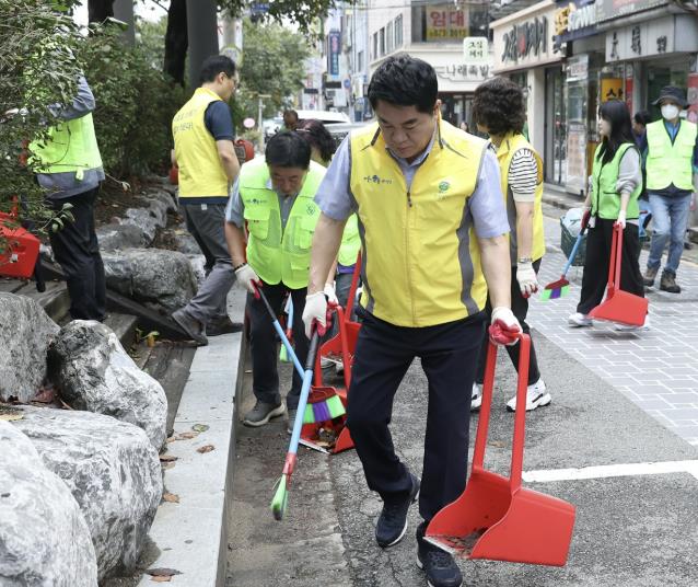 ▲ 중앙동 직원들과 함께 추석맞이 대청소하는 박준희 관악구청장