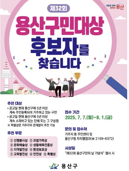 ▲ ‘제32회 용산구민대상’ 후보자 추천 포스터 |