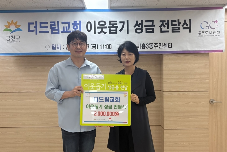 [뉴스앤톡] 금천구는 지난 17일 시흥3동에 소재한 더드림교회에서 관내 저소득층을 위해 성금 200만 원을 기부했다고 밝혔다.