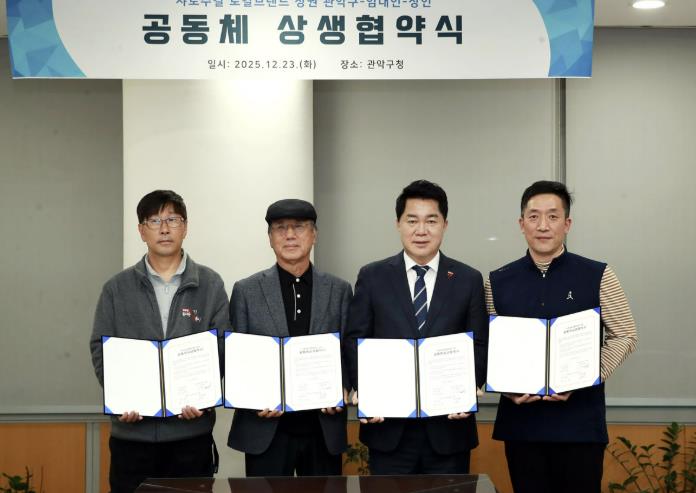 구는 지난 23일 관악구-임대인-상인 간 ‘샤로수길 로컬브랜드 상권 공동체 상생협약’을 체결했다. 협약식에는 샤로수길 임대인 모임 대표와 샤로수길 상인회 회장이 참여했고, 협약 내용에 샤로수길 임대인 101명과 상인 235명이 동의하며 높은 관심과 지지를 보였다.