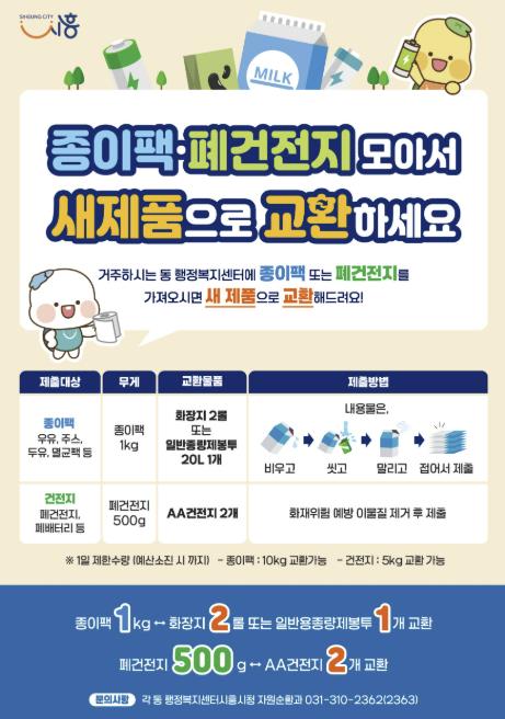 시흥시, 종이 팩·폐건전지 모아서 생활용품으로 교환하세요