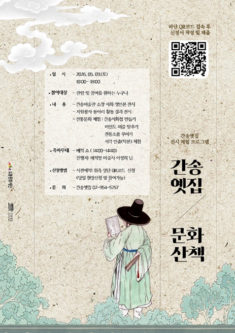 [뉴스앤톡] 서울 도봉구 도봉문화재단 간송옛집이 오는 5월 9일 오전 10시부터 간송옛집에서 전시·체험·공연이 결합한 참여형 문화프로그램 ‘간송옛집 26년도 문화산책’을 진행한다.