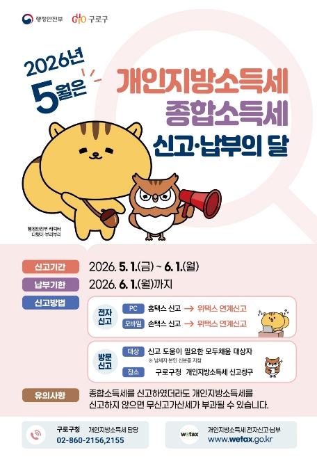 [뉴스앤톡] 구로구가 5월 한 달간 개인지방소득세(종합소득) 신고·납부 기간을 운영한다.