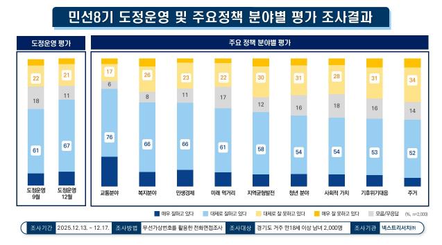 | ▲ 12월 민선8기 경기도정 긍정평가 67%. 9월 대비 6%p 상승 |