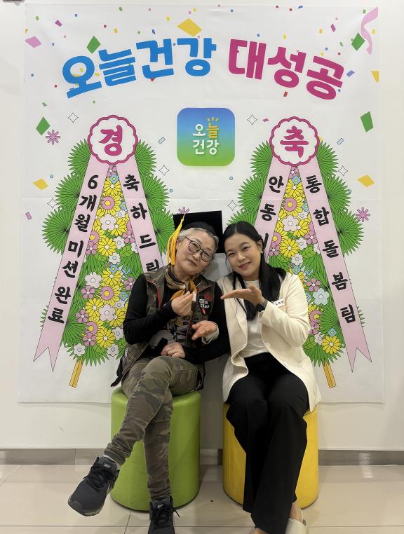 허약․만성질환 관리 및 건강행태 개선을 필요로 하는 65세 이상 어르신 300명을 대상으로 진행됐으며, 사업에 참여한 어르신들은 사전 건강 평가를 통해 개인별 건강 상태를 확인하고, 6개월간 ‘오늘건강’ 앱을 통해 매일 건강 미션을 수행했다. 미션은 ▲걷기 ▲혈압 측정 ▲수분 섭취 ▲투약․복용 시간 체크 등 다양한 건강 관련 활동을 포함하고 있으며, 어르신들이 건강한 생활 습관을 형성할 수 있도록 적절한 목표와 정보를 제공했다.
