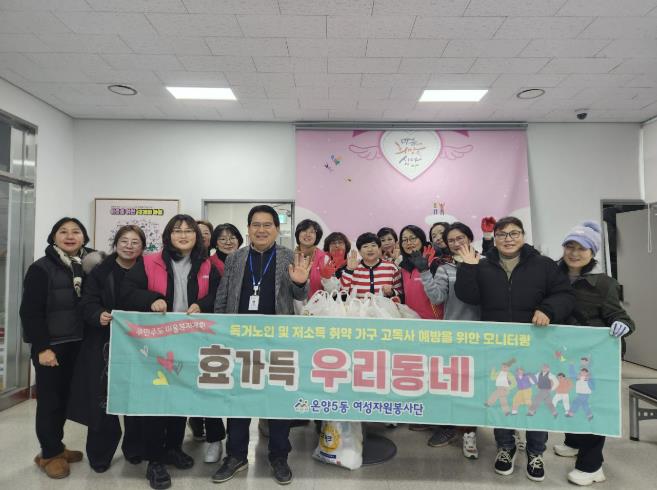 김경일 온양5동장은 “여성자원봉사단의 오랜 봉사와 헌신이 지역사회 돌봄의 든든한 버팀목이 되고 있다”며 “앞으로도 민·관이 협력해 복지 사각지대 해소와 고독사 예방에 최선을 다하겠다”고 말했다.