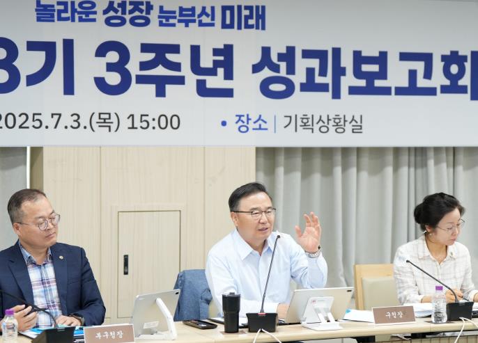 이날 보고회에는 류경기 중랑구청장을 비롯한 70여 명의 부서장이 참석한 가운데 민선 7기 출범 이후 7년간 추진해 온 주요 정책과 사업의 성과를 종합적으로 점검했다.