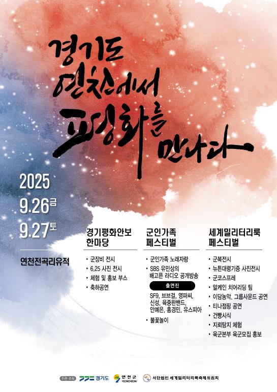 [뉴스앤톡] 경기도는 9월 26일과 27일 이틀간 연천군 전곡리유적에서 ‘2025년 경기 평화안보 한마당’을 개최한다. ‘연천 군인가족 페스티벌’과 함께 진행될 예정인 이날 행사는 도민과 군인가족이 함께 평화와 안보의 가치를 공유하는 소통과 화합의 장으로 마련했다.