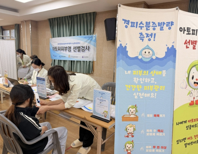 센터 전문 의료진이 참여해 전교생 95명을 대상으로 피부에서 증발하는 수분량인 경피수분증발량(TEWL)을 측정하고, 아토피피부염 중증도(SCORAD) 검사를 했다. 피부 검진 결과지와 가정에서 보호자와 함께 참여할 수 있는 예방 관리 안내지도 제공했다.