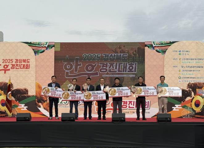 [뉴스앤톡] 예천군은 21일, 영주시 문정둔치에서 열린 ‘2025년 경상북도 한우경진대회’에서 예천군 풍양면 김영휘 씨가 암송아지 부문 최우수상을 수상해 예천한우의 우수성을 널리 알렸다고 밝혔다.