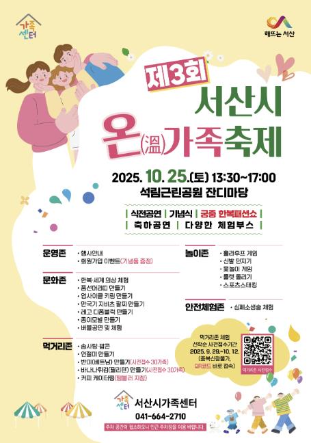 [뉴스앤톡] 충남 서산시는 오는 10월 25일 석림근린공원 잔디마당 일원에서 제3회 온(溫)가족 축제를 개최한다고 밝혔다.
