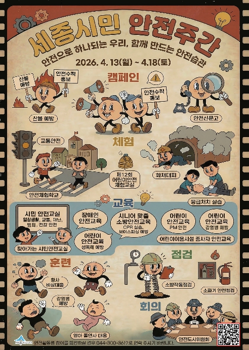 [뉴스앤톡] 세종특별자치시가 오는 13일부터 18일까지 시민 일상 속 안전실천 문화를 확산하고자 2026년 상반기 세종시민 안전주간을 운영한다.