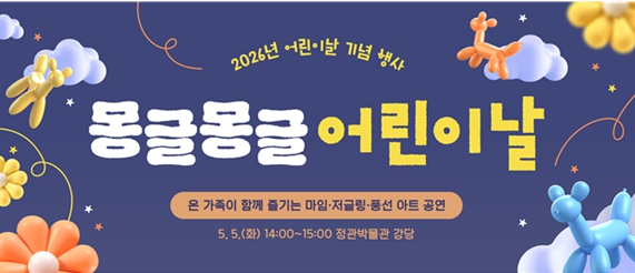 [뉴스앤톡] 부산시립박물관 소속 정관박물관은 오는 5월 5일 '제104회 어린이날'을 맞아 온 가족이 함께 즐길 수 있는 기념 행사 '몽글몽글 어린이날'을 개최한다고 밝혔다.