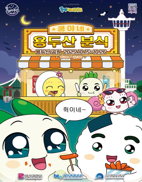 [뉴스앤톡] 부산시는 부산관광공사와 오늘(15일)부터 10월 26일까지 용두산공원에서 '별바다부산 나이트 팝업 시즌3'으로 '쿵야네 용두산 분식 팝업'을 운영한다고 밝혔다.