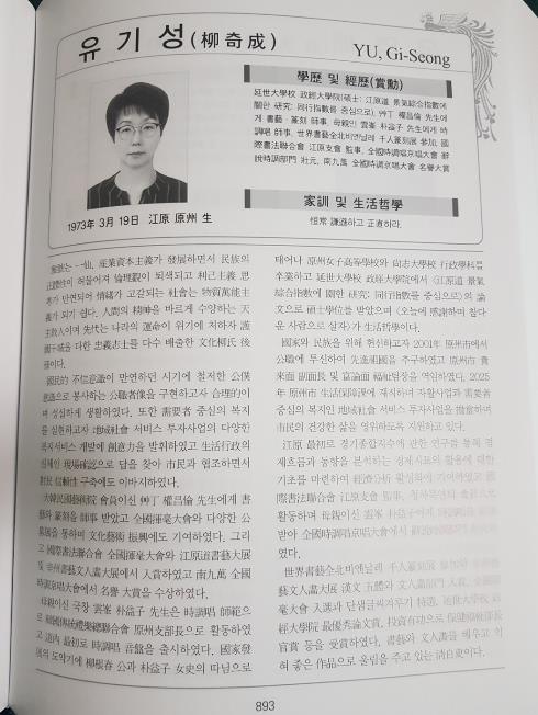 | ▲ 원주시 유기성 팀장, ‘현대한국인물사’에 이름 올려 |