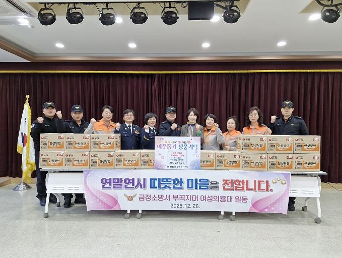 [뉴스앤톡] 부산시 금정소방서 부곡지대 여성의용소방대은 지난 26일 장전1동·장전2동에 ‘사랑의 손길’라면 34박스를 기탁했다고 밝혔다.