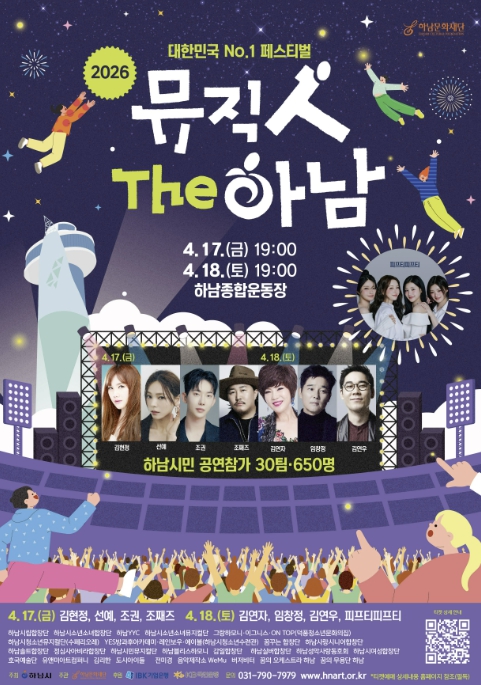 [뉴스앤톡] 하남의 봄을 깨우는 압도적 선율과 시민의 열정이 하나로 어우러지는 ‘2026 하남뮤직페스티벌 '뮤직 人 The 하남'’이 오는 4월 17일과 18일 양일간 하남종합운동장에서 화려한 막을 올린다.