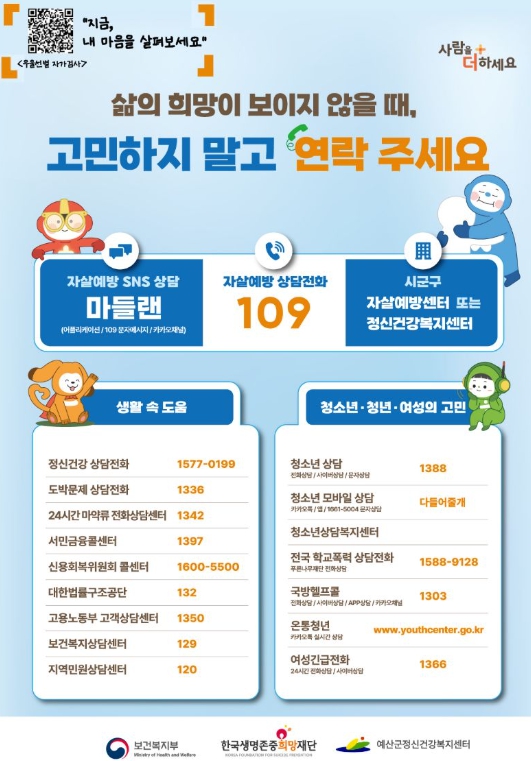 최근 정서적 어려움과 경제적 부담, 사회적 고립 등 복합적인 요인으로 우울감과 극심한 스트레스를 호소하는 사례가 증가함에 따라, 자살 위험군의 조기 발견과 신속한 도움 연계의 중요성이 더욱 강조되고 있다.