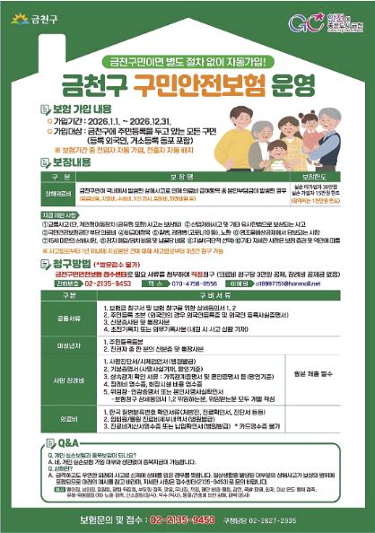 새롭게 찾아온 일상생활의 안전망... 2026년 금천구 '구민안전보험'