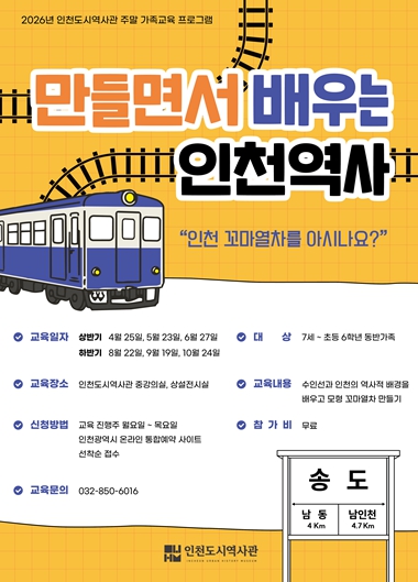 김상열 시 인천도시역사관장은 “이번 프로그램을 통해 수인선 협궤열차의 역사적 배경과 그 속에 담긴 이야기를 배우고 인천의 역사와 문화에 대해 호기심과 흥미를 갖게 되는 계기가 되기를 바란다”고 말했다.