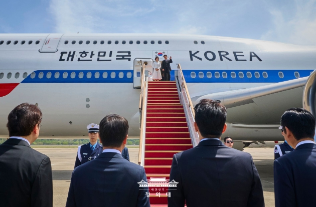 [뉴스앤톡] 이재명 대통령과 김혜경 여사는 5박 6일 일정의 인도 및 베트남 국빈 방문을 위해 19일 경기 성남 서울공항에서 대통령 전용기(공군 1호기)를 이용해 출국했다.