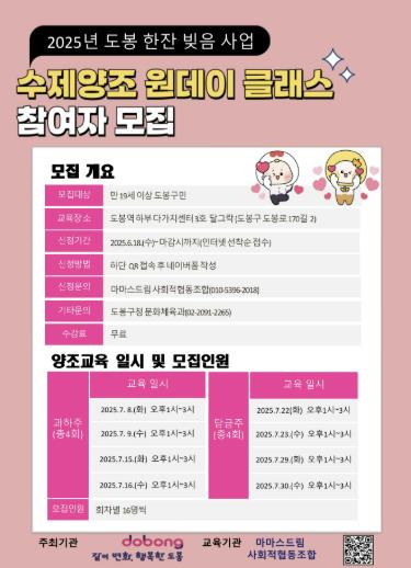 오언석 도봉구청장은 “직접 술을 빚으며 수제 양조문화를 배우고, 새로운 취미를 발견하는 소중한 시간이 되길 바란다.”라고 말했다.