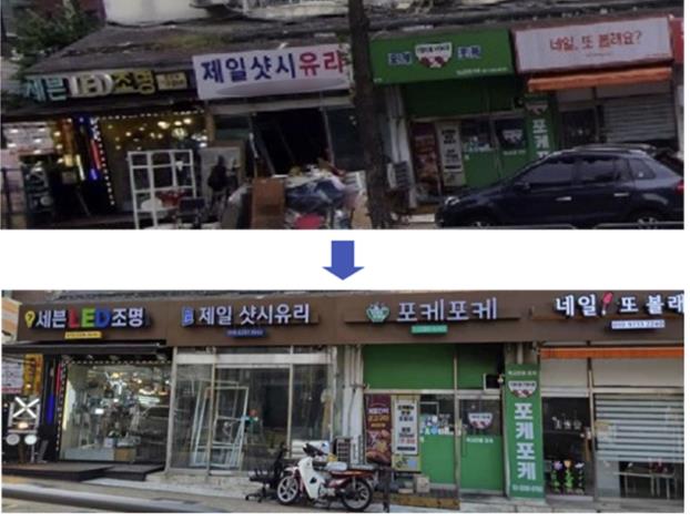 ▲ 간판개선 전(위)·후(아래) 사진