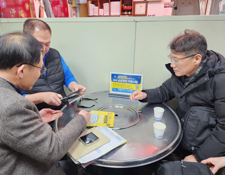 | ▲ 소상공인 매니저가 사업장을 방문하여 지원사업을 설명하는 모습 |