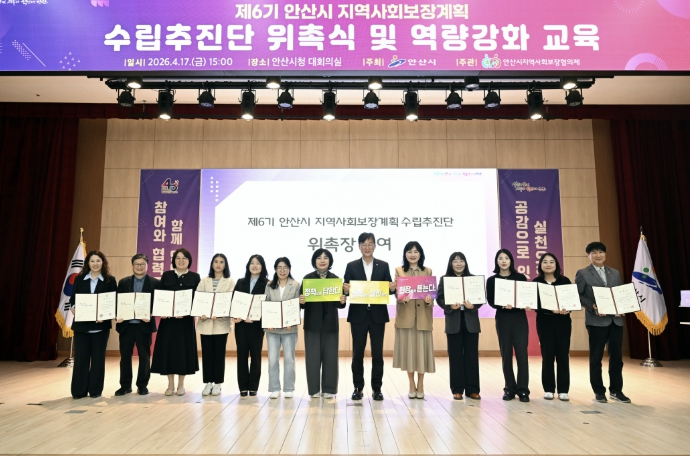 [뉴스앤톡] 안산시는 지난 17일 시청 대회의실에서 제6기(2027~2030년) 지역사회보장계획 수립 추진단 위촉식과 역량 강화 교육을 개최하고 본격적인 계획 수립에 착수했다고 20일 밝혔다.