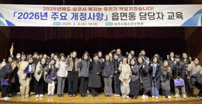 [뉴스앤톡] 상주시에서는 지난 4일 청소년수련관에서 읍면동 공무원을 대상으로 2026년 주요 복지사업 개정사항에 대한 전달교육을 실시했다.
